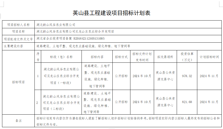 湖北韵山风谷农业有限公司见龙山庄农业综合开发项目
